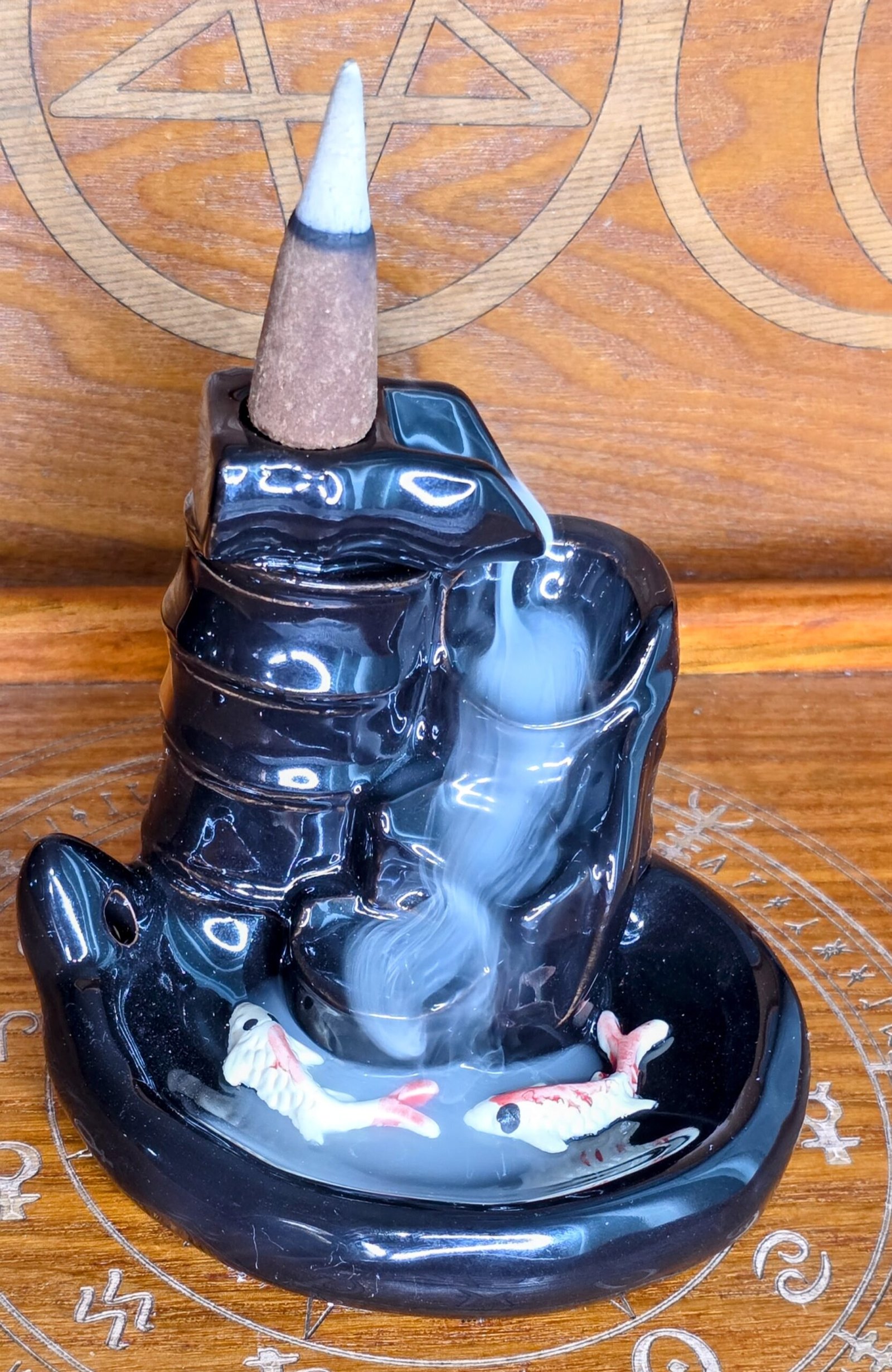 Black Rock Cascade in Koi Pond Backflow Incense Holder