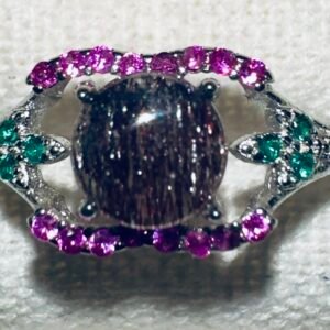 Rare and powerful, the Black Super Seven Ring embodies the combined energy of seven crystals — amethyst, quartz, smokey quartz, rutile, goethite, lepidocrocite, and cacoxenite. Its deep, cosmic hue represents spiritual awakening, grounding, and transformation, making it a truly mystical gemstone of higher vibration.