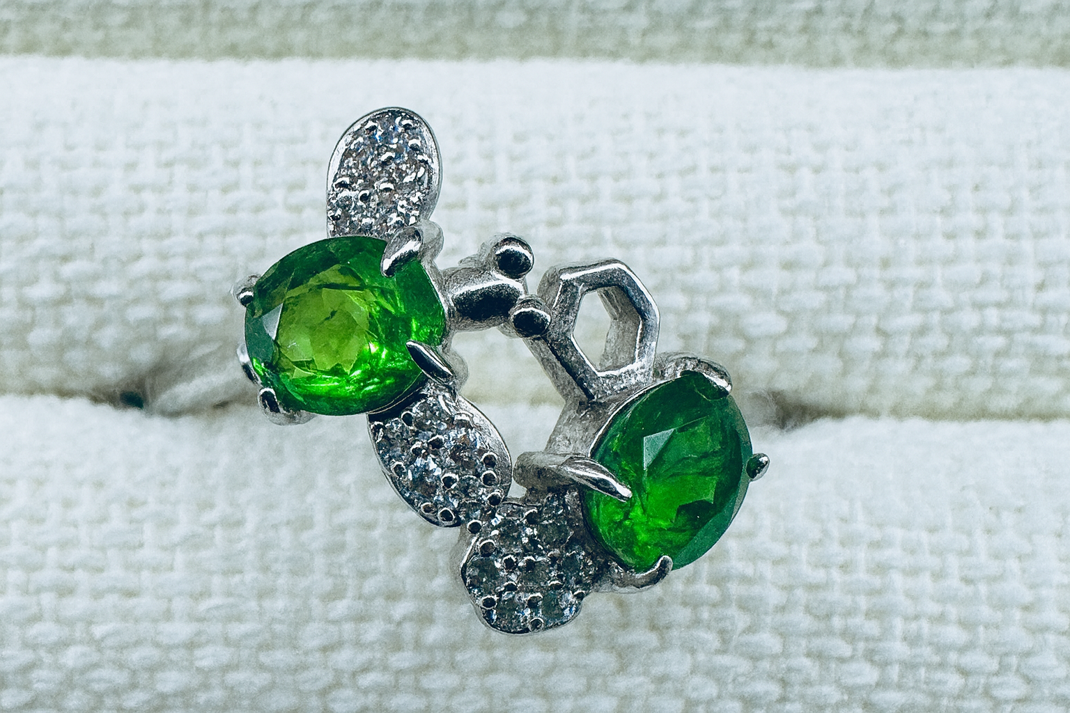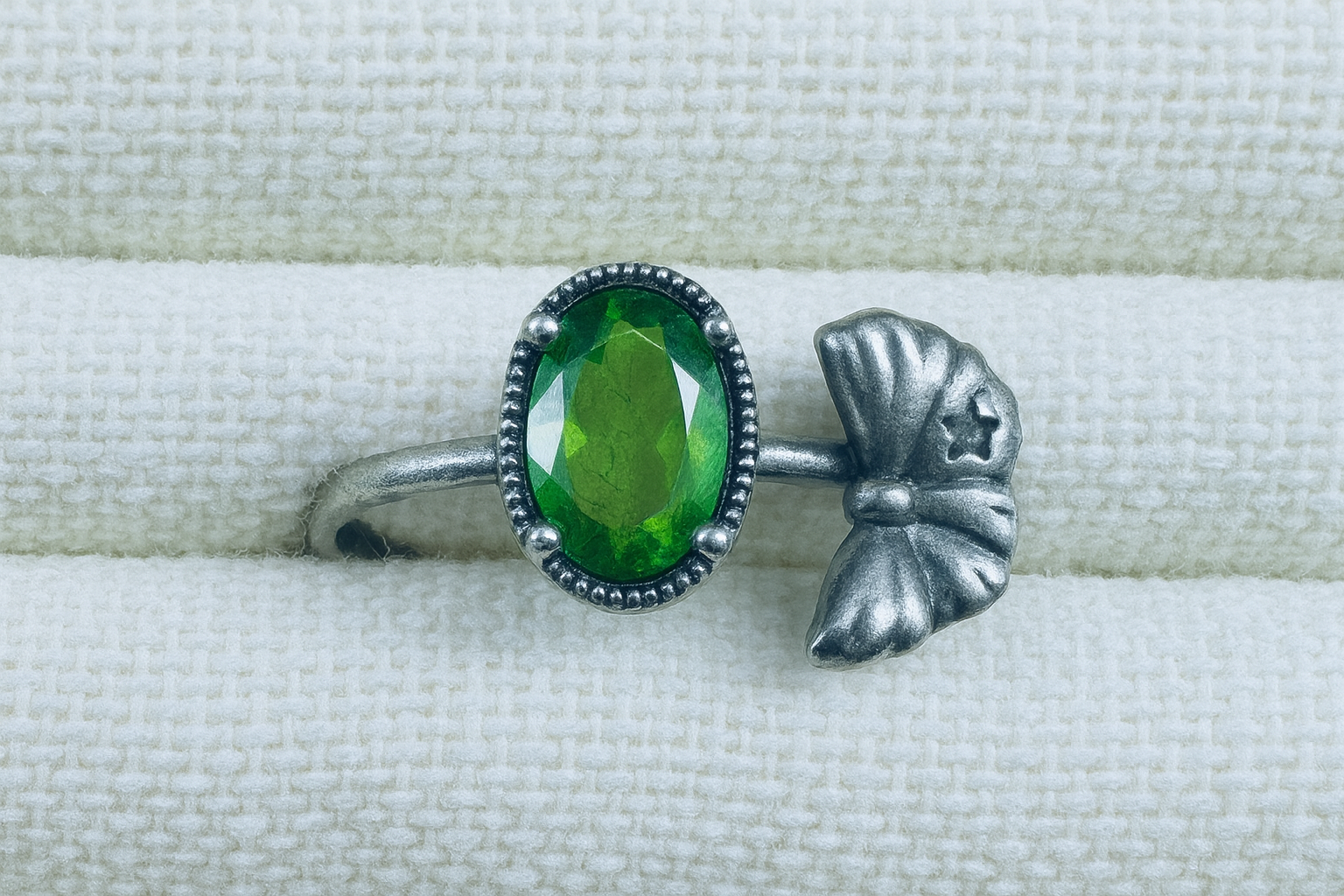Vivid and enchanting, the Dioptase Ring captures attention with its brilliant emerald-green glow. Known as a stone of compassion and emotional renewal, Dioptase symbolizes healing, forgiveness, and the awakening of the heart.