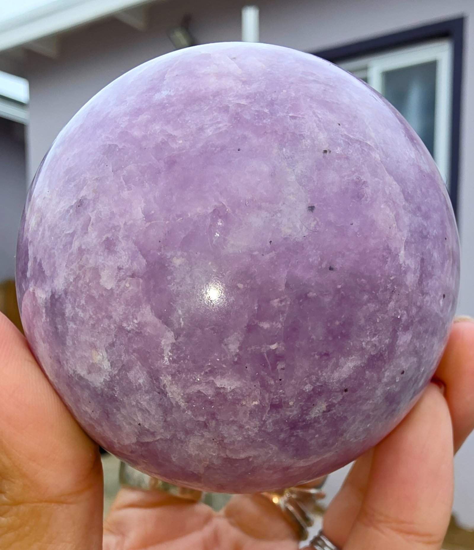 In its spherical form, the Lepidolite radiates harmony in all directions, creating a peaceful energy field that nurtures your home, heart, and spirit.