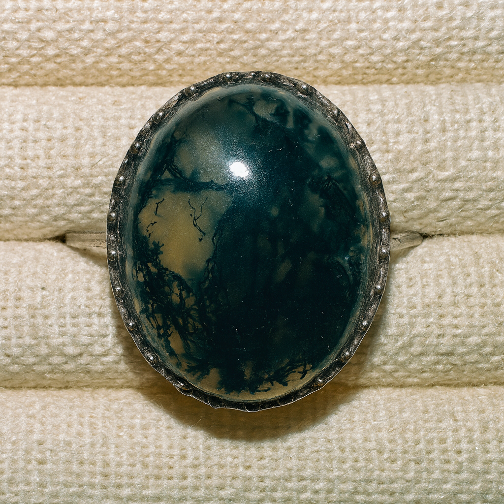 Natural and serene, the Moss Agate Ring captures the beauty of nature with its soft green inclusions resembling moss-covered landscapes. Known as the Stone of Abundance and Growth, it symbolizes harmony, renewal, and a deep connection to the Earth.