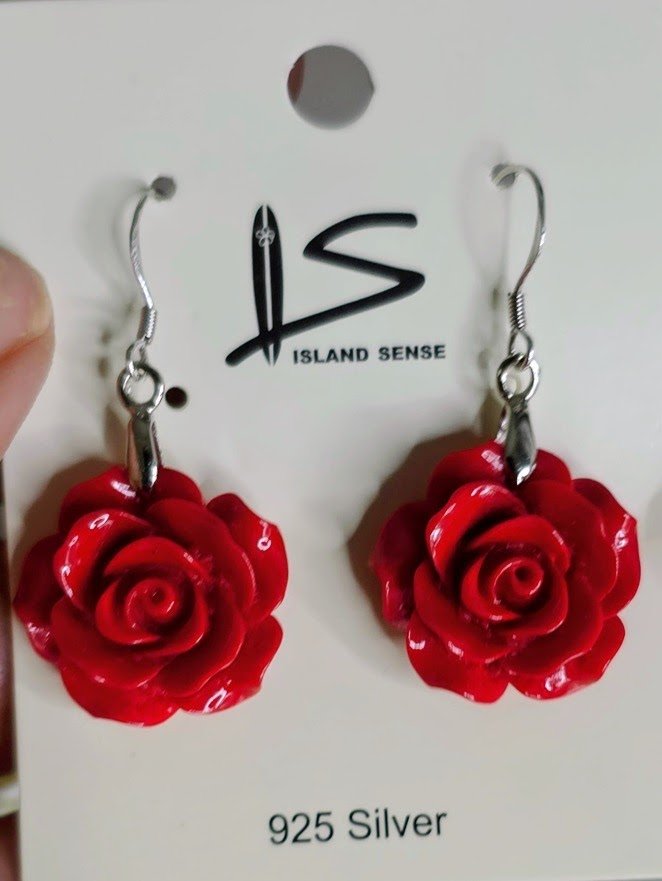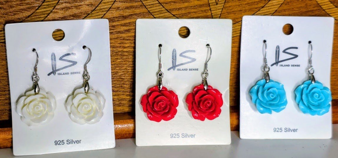 A delicate fusion of ocean beauty and timeless elegance, these Ocean Rose Earrings feature hand-carved coral roses in red, blue, and white, gracefully set in S925 sterling silver.