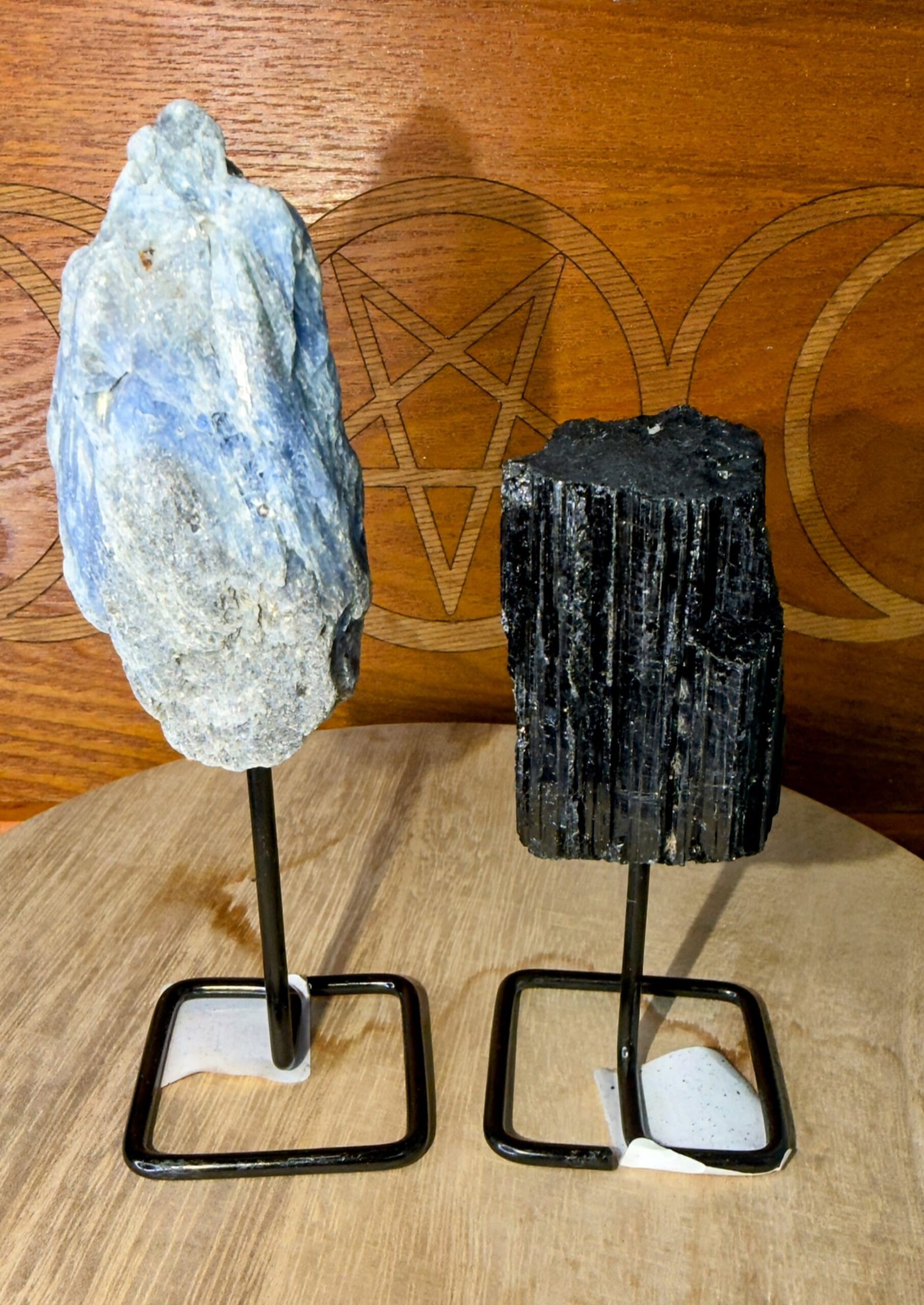 Raw Black Tourmaline + Raw Blue Kyanite on Metal Stand