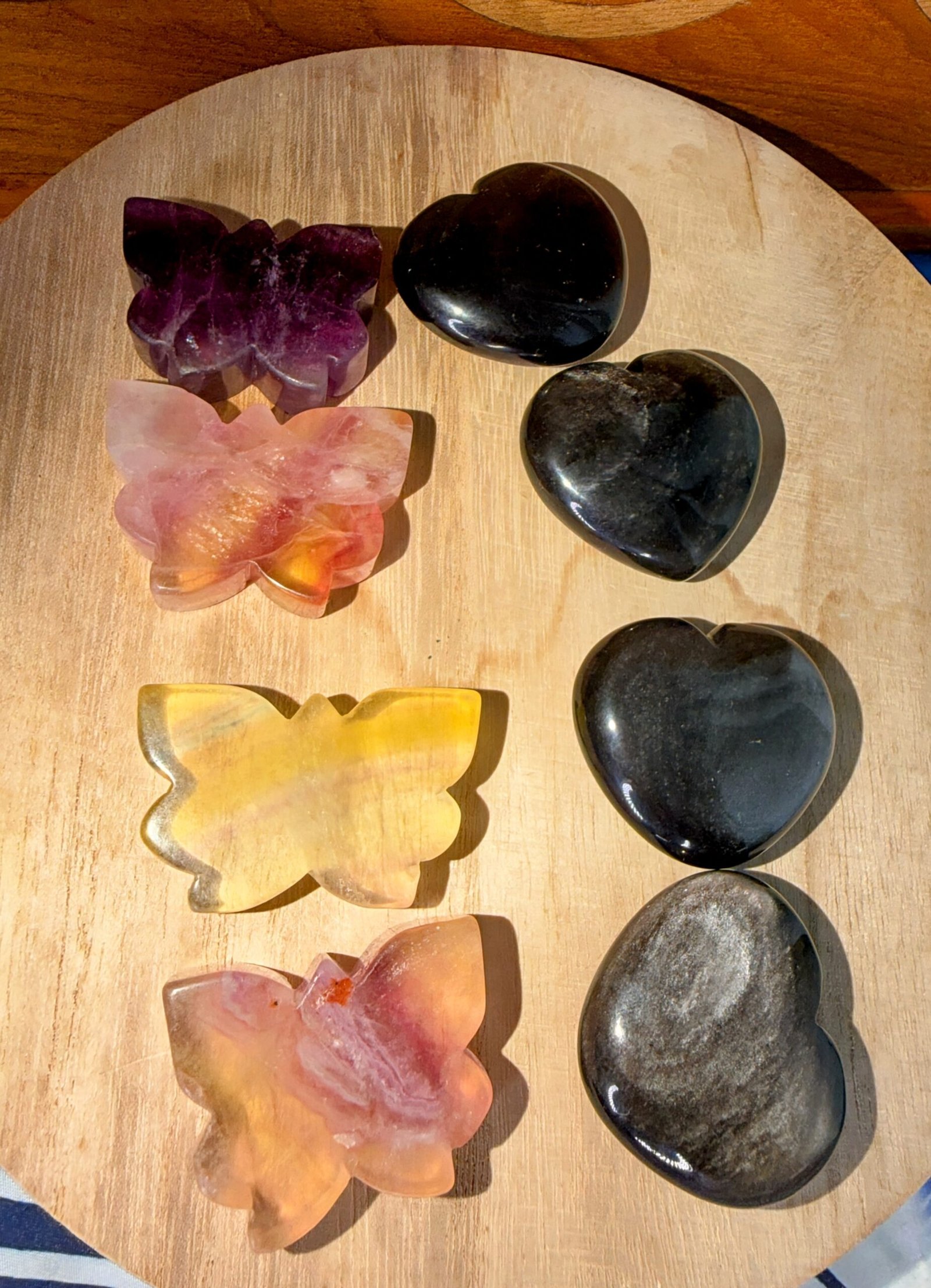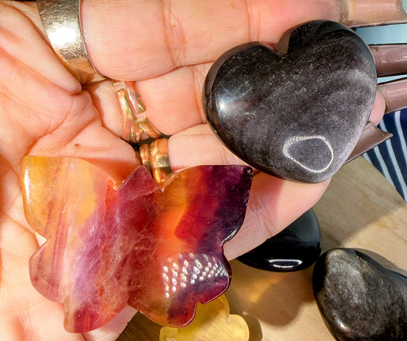 Candy Fluorite Butterfly + Silver Sheen Obsidian Heart Combo