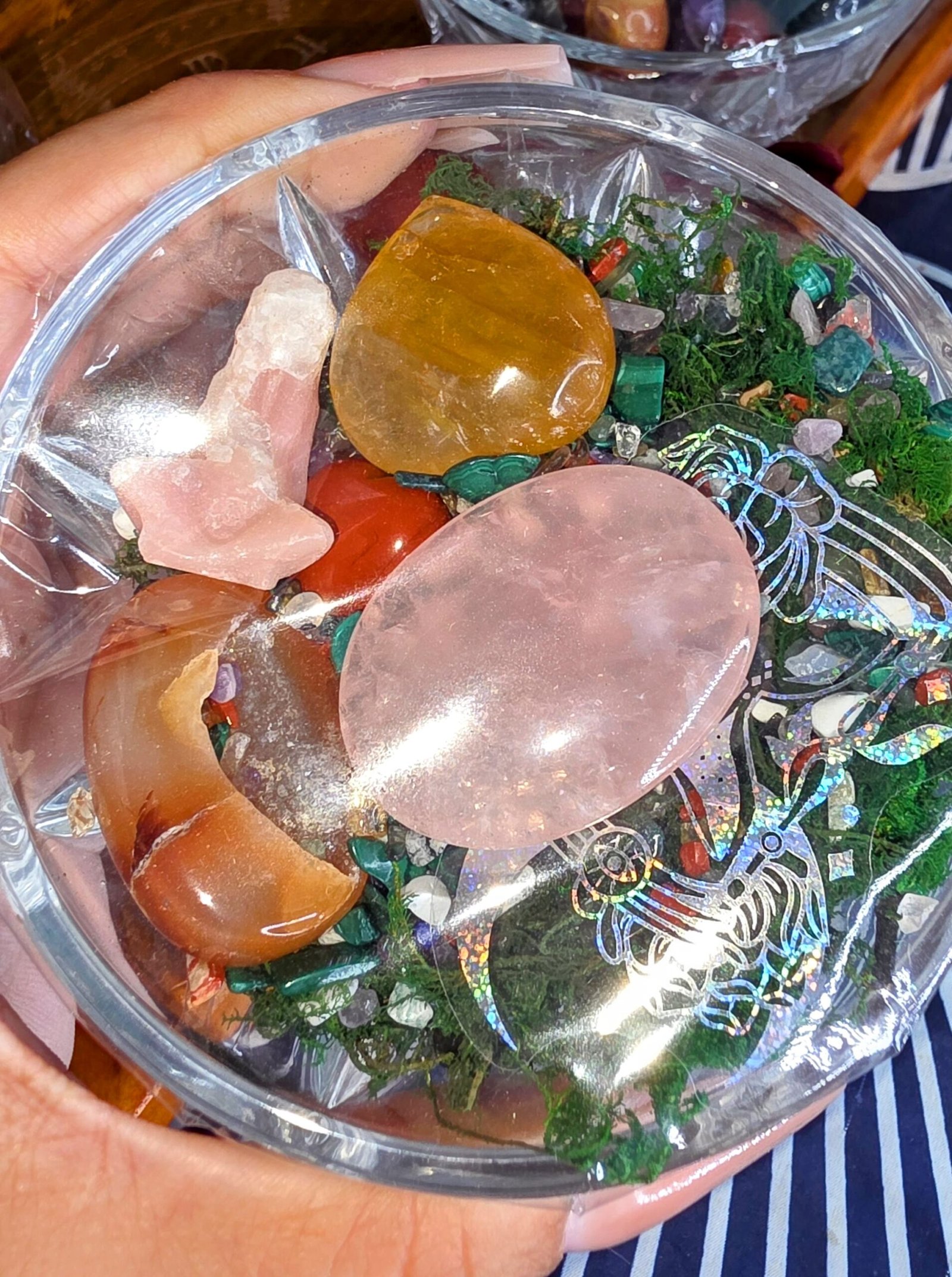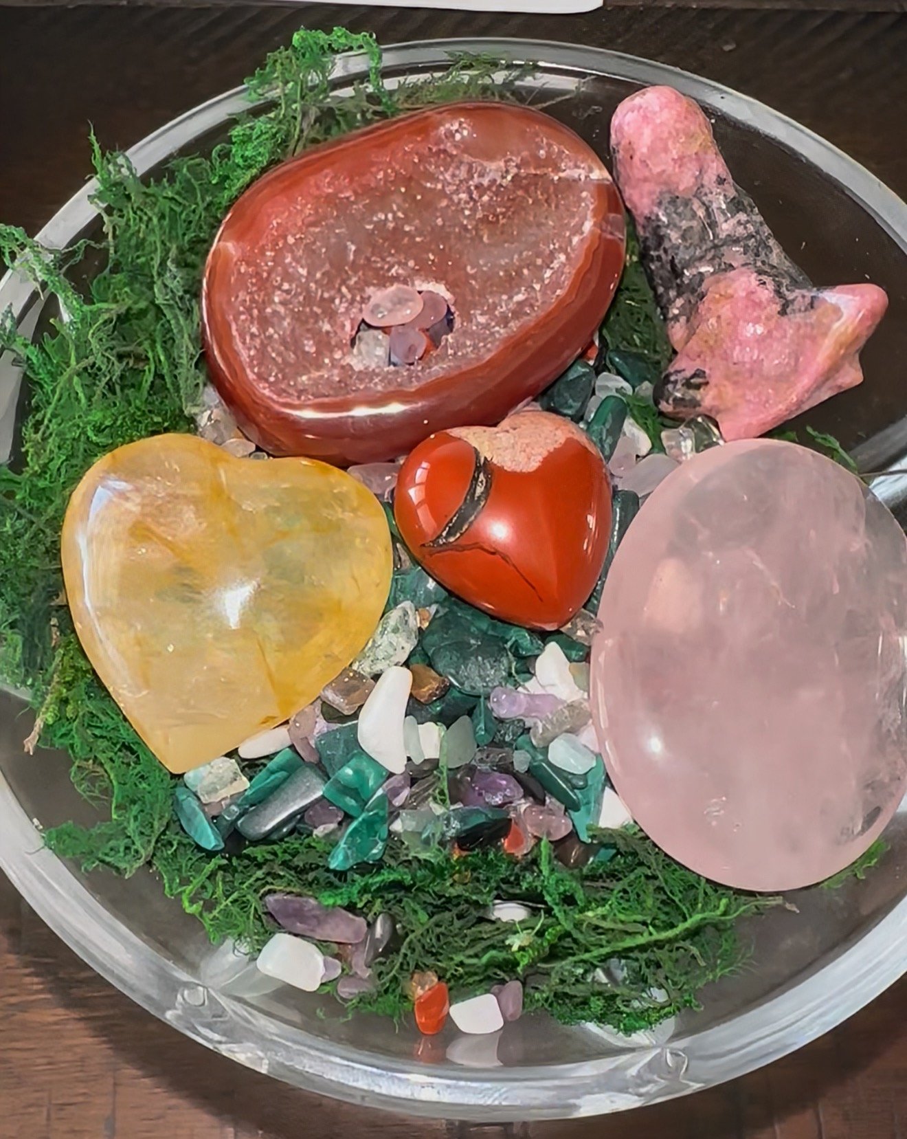• 🌿 Bed of Moss & Mixed Crystal Chips – A lush foundation representing growth, balance, and connection to nature.